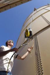 | Keywords: Robotic inspection of water tanks DVIDS337672.jpg en Field Tech Noah Peyer of Tank Industry Consultants sends up a remote operated vehicle to his father Field Service Manager Jim Peyer at the top of a 200 000 gallon fresh water tank Nov 3 on Camp Lemonnier The ROV has a video camera that sends a signal back to a DVD recorder monitor and control unit to visually inspect the quality and condition of the water holding tank The inspection is being conducted to insure the quality of the water held with in the tank remains at a high quality and the vessel is physically sound 2010-11-03 U S Navy photo by Chief Petty Officer Robert P Gallagher https //www dvidshub net/image/337672 101103-N-+++++-004 2010-11-08 10 36 DJIBOUTI DJ PD-USGov-Military-Navy Camp Lemonnier Images from DoD uploaded by Fæ |
