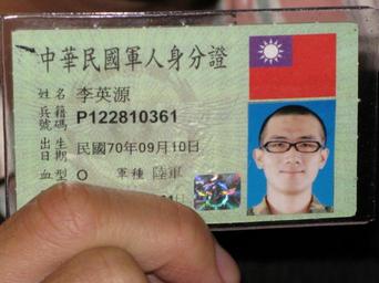Keywords: ROC Military Personnel ID Card 20071231.jpg zh-tw 2007年,中華民 防部製發的中華民 軍人身分證 下方貼中華民 軍軍徽雷射貼紙,限用日 被手指遮住 2007-12-31 12 49 46 http //callisto pixnet net/album/photo/76868444 中華民 防部 other versions Custom license marker 2016 05 16 PD-ROC-exempt Ministry of National Defense Republic of China Military life in Taiwan Identity documents of Taiwan |