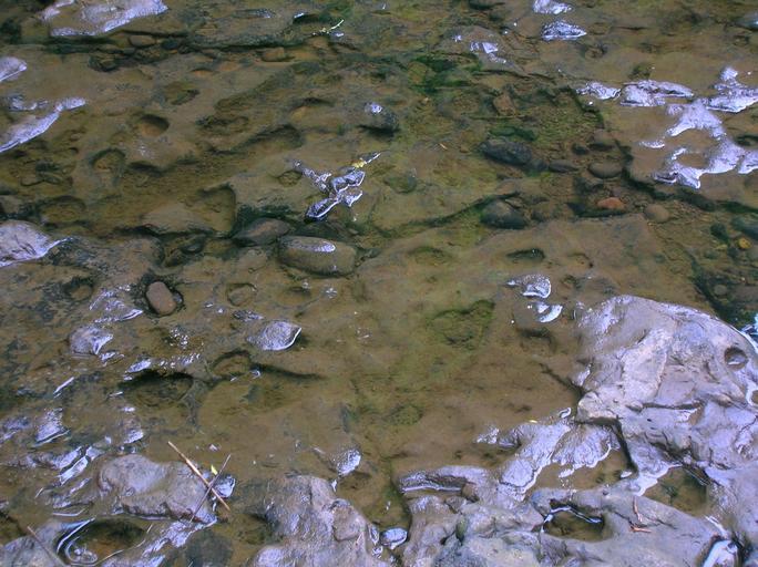 Keywords: Rock-cut basins en mass.JPG en Various small rock-cut basins in fossiliferous limestone Own Rosser1954 2008-06-24 Caaf Water Lynn Glen Dalry Ayrshire Scotland Rock-cut basin