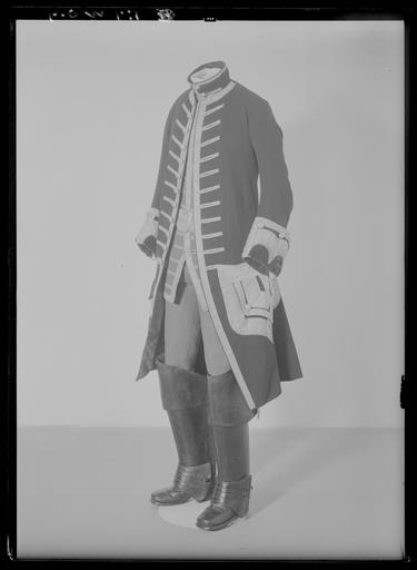 | Keywords: Rock, justaucorps, i blått kläde till Gustav IIIs franska jaktdräkt - Livrustkammaren - 61867.tif LSH artwork LeDuc Skräddare sv Rock i blått kläde med stora galondekorerade fickor och gudkantade knapphål längs med båda framkanterna Modellen är figurnära med hög krage har svängd framkant som öppnar sig nedåt sidsömmarna är kraftigt utåtvinklade med veckade sidsprund Ärmarna är smala med stora mörkröda sammetsmanschetter dekorerade med galoner Klädet är i en mycket fin kvalitet troligen fransktillverkat Rocken har flera öppet skurna kanter tex kanten nedtill och kanten fram Kragen har rött sammetsfoder och en smal guldgalon mitt fram med två runda metallknappar Rygen bak har samma förstärkning uppe i nacken som västen Kragen har rött sammetsfoder och en smal guldgalon mitt fram med två runda metallknappar Sprundet mitt bak saknar överlappning är galonkantat samt ytterligare markerat med tre guldkantade knapphål på tvären från sprundet och ut åt sidorna De översta kant i kant med guldgalonen och därefter med 5 5 cm mellanrum Där knapphålen slutar finns en slags inprovning som gör att vidden i rocken lägger sig som ett extra veck på bakstycket Sprundöppningen är 45 cm lång Sidsprunden 40 cm långa kantas också av guldgalon som även inramar knappen som sitter i sidan ovanför vecken Rocken är dekorerad med fyra sortes galoner På kragen en smal ca 1 cm bred enklare sort Längs med framkanten sitter en guldgalon 2 5 cm bred med sick sack mönster den finns runt halsen fram på båda sidor om sprundet mitt bak på båda sidor om sidosprundet I sidosprundet är de glänsande i guld Ficklocken är nästan helt galonklädda 2 5 cm galonen kantar ficklocken och innanför denna sitter en 5 7 cm bred i både silver och guld Denna breda silver och guldgalon sitter runt hela ficklocket på själva rocken vilket gör fickan mycket framträdande Rocken har 11 större knappar och 11 riktiga knapphål samt 11 oöppnade på högra sidan för att få en symmetri i dekoren Alla knapphål är ställda lite snett uppåt De är 7 cm långa och öppningen 5 cm Översta knappen sitter 5 cm ned och därefter med 5 cm mellanrum Tre metallhyskor och hakar gömmer sig i framkanten mellan kläde och foder övre hyskan saknas Ärmarna är snäva med överärm och underärm som är svängda Manschetten är påsydd vidare än själva ärmen den är ca 15-16cm bred och utsidan är i röd sammet Längs kanten sitter en guldgalon 2 5 cm bred och de lodräta sömmarna täcks av en bredare guldgalon 3 5 cm som endast förekommer här på plagget Mellan guldgalonerna sitter den breda silver/guld galonen samma som runt fickorna den är lagt i bågmönster vilket gör att den har sytts fats med småveck i innerkurvorna Manchetten knäpps med två knappar fram och en bak samma knappar som på rocken Knapparna är förgyllda och har ett flätat mönster på ovansidan kärnan är av trä Antal knappar 27 st 2 mindre och 25 större 16 mm Galoner 14 meter och 61 cm 827 cm 2 5 cm br 425cm 5 7 cm br 80 cm 3 5 cm br 75 cm 1 cm br Foder i rött ylle Inga spår av ändringar Kilar i sidosprundets veck i övrigt inga skarvar Sidovecken är ihopsydda likaså vecken bak Troligen gjort senare Kragen är fodrad i röd sammet Fickpåsarna i grovt naturfärgat linne eller hampa Dräkten användes av Gustav III som kronprins då han besökte Ludvig XV för att deltaga i den första hovjakten i Versailles 1771 02 15 Enligt brev till Lovisa Ulrika från Gustav III så kan detta vara den dräkt som Ludvig skänkt Gustav för detta tillfälle 1790 års klädkammarinventarium nämner denna dräkt under No 110 citat från Gudruns avskrift En Jagt Klädning nyttjad då Konungen såsom Kron Prins År 1771 var i Frankrike bestående af Råck Väst och Böxor Råcken af Mörkblått Kläde med Krusiga förgyllda Knappar samt Krage och uppslag af Rödt Sammet med Gulld- och Silfver Galoner fordrad med rödt Ratin Västen af Skarlakan med förgyllda knappar och Gulld-Galoner fordrad med hvitt Sarge de Sojie Böxorne af Skarlakan med silkes Knäband och guldtrådsknappar En tillhörig Hirschfängare med stålfäste i Basrelief incrusterad med guld och gehäng af sämsk med guldgalon original caption Gustav III s franska resa 1771 broadcloth Färg blå d1 - dräkt - yttermaterial material kläde - gold Färg guld d4 - dräkt - passpoaler band kantning uppslag material guldgalon - silver Färg silver d4 - dräkt - passpoaler band kantning uppslag material silvergalon - woolen Färg röd d2 - dräkt - foder material ylletyg - velvet Färg röd d6 - dräkt - krage epåletter manschetter material silkesammet size mm 870 midja size mm 140 manschett size mm 1461 galoner size mm 1080 size mm 1070 size mm 3840 nedtill size mm 600 ärm LRK Gustav III av Sverige Idrotts- o turistutställningen i Berlin 1894 Jakt 1973 Läckö slott Livrustkammarens basutställning 1978 Kungligt klädd 1987-1989 Gustav III - Kläder för tid och evighet 1998 Jakten - konstnärens motiv - jägarens mål 2003 l'Homme Paré 2005-2006 Trogna vänner - Kungliga hästar och hundar 2011-2012 Museiverket/Finlands nationalmuseum Fêtes et divertissement á la cour 2016-2017 Chäteau de Versailles Visitors to Versailles 1682-1789 2017-2018 Chäteau de Versailles Visitors to Versailles 1682-1789 2018 Metropolitan Museum place of origin original filename LN_B16557_019437 48200 inventory number LRK 11596 61867 CC0 Rock justaucorps i blått kläde till Gustav IIIs franska jaktdräkt - Livrustkammaren - 61867-negative tif <gallery caption Different images of same object > File Rock justaucorps i blått kläde till Gustav IIIs franska jaktdräkt - Livrustkammaren - 10503 tif File Rock justaucorps i blått kläde till Gustav IIIs franska jaktdräkt - Livrustkammaren - 19065 tif File Rock justaucorps i blått kläde till Gustav IIIs franska jaktdräkt - Livrustkammaren - 70429 tif File Gustav IIIs franska jaktdräkt använd vid hovjakt i Versai