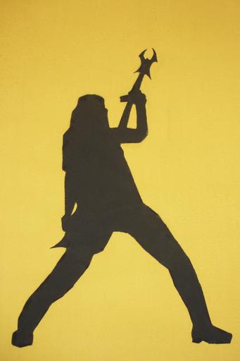 Keywords: rock rocker painting mural silhouette guitar chord heavy metal pose music modern music contrast mast rock 'n' roll metal