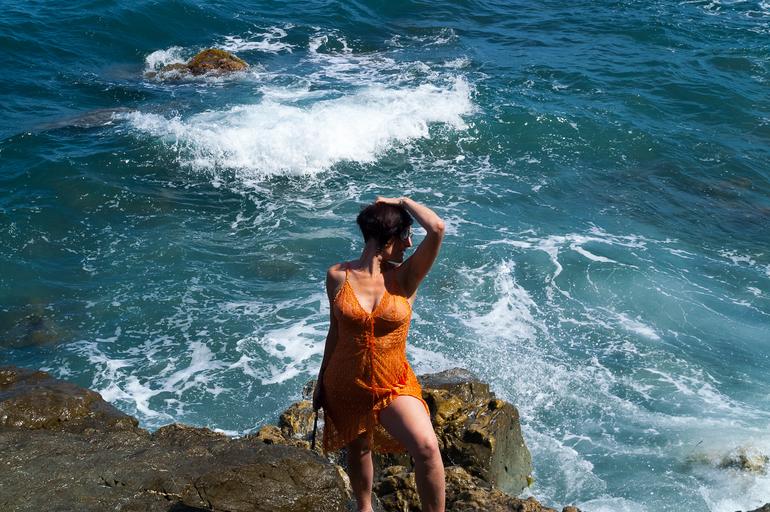 Keywords: rock woman water sea travel girl summer holiday orange lace