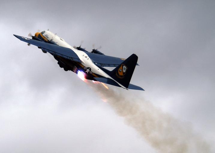 Keywords: rocket assisted takeoff airplane military navy blue angels support cargo c-130 fat albert aviation turboprop flying plane aircraft marines