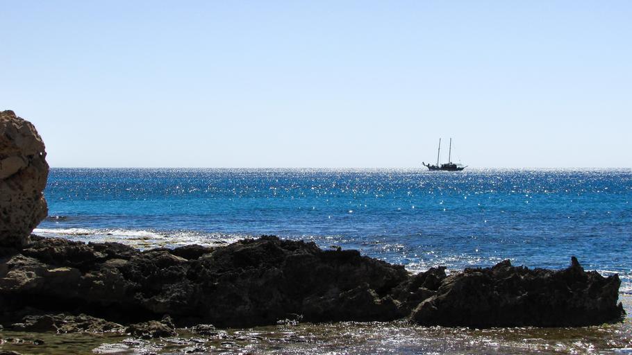 Keywords: rocky coast sea boat horizon scenic cyprus ayia napa