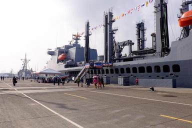 | Keywords: ROCN Panshi (AOE-532) Shipped at No.3 East Pier of Zuoying Naval Base 20151024c2.jpg zh-tw 2015年左營軍港營 開放活動上午, 三號碼頭油彈 給艦磐石艦艏遠景 2015-10-24 09 07 40 own 玄史生 other versions ROCN Panshi AOE-532 2015 Zuoying Naval Base Open Day 玄史生写 文庫 Taken with Fujifilm X-T1 Uploaded with UploadWizard cc-zero |