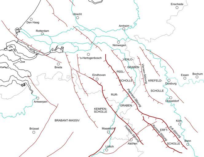 | Keywords: Roerdal graben map DE.svg  de Tektonische Karte von den südlichen Niederlanden norden Belgiens und anschließenden Teile Deutschlands Die wichtigste Störungen sind angegeben Own Woudloper 2008-09 Geological maps of North Rhine-Westphalia Geological maps of Belgium Geological maps of the Netherlands SVG geology SVG maps in German |