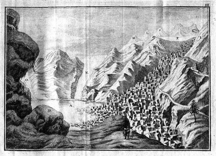Keywords: RofenerEissee1772.jpg Zeitgenössische Darstellung des vom Vernagtferner gestauten Rofener Eissees 1772 Kupferstich Der Rofener Eissee am 16 8 1772 Originalscan der Darstellung in Joseph Walchers Nachrichten von den Eisbergen im Tyrol von 1773 Titel Menschen beobachten die chaotische Zunge des Vernagtferners Autor Creator Joseph Walcher Legende A der See mit auf ihm treibenden Eisbergen B der Rofenberg C der Neusberg D die Zwerchwand Standpunkt des Betrachters E der Eisdamm bestehend aus riesigen Eisblöcken F der Hochvernagtferner G das Vernagttal aus dem das Eis in das Rofental floss H I Platteikogel K Fluchtkogel L Kösselwand M Guslarberg N Hintereisferner O Hochjochferner P Steinmann S Rofental PD-old-100 Lakes of Tyrol state Ötztal Alps Glacial lakes 1772 Vernagtferner Rofental Hintereisferner Joseph Walcher |