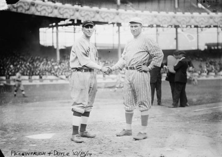 | Keywords: Roger Peckinpaugh, New York AL and Larry Doyle, New York NL (baseball) (LOC).jpg Bain News Service publisher Roger Peckinpaugh New York AL and Larry Doyle New York NL baseball 1914 1 negative glass ; 5 x 7 in or smaller <b>Notes </b> Original data provided by the Bain News Service on the negatives or caption cards Peckinpaugh Doyle 10/8/14 Corrected title and date based on research by the Pictorial History Committee Society for American Baseball Research 2006 Forms part of George Grantham Bain Collection Library of Congress <b>Format </b> Glass negatives <b>Rights Info </b> No known restrictions on publication <b>Repository </b> Library of Congress Prints and Photographs Division Washington D C 20540 USA <a href http //hdl loc gov/loc pnp/pp print rel nofollow >hdl loc gov/loc pnp/pp print</a> General information about the Bain Collection is available at <a href http //hdl loc gov/loc pnp/pp ggbain rel nofollow >hdl loc gov/loc pnp/pp ggbain</a> <b>Persistent URL </b> <a href http //hdl loc gov/loc pnp/ggbain 17868 rel nofollow >hdl loc gov/loc pnp/ggbain 17868</a> <b>Call Number </b> LC-B2- 3304-12 Flickr http //flickr com/photos/8623220 N02/6442021039 Roger Peckinpaugh New York AL and Larry Doyle New York NL baseball LOC 1914-01-01 00 00 00 http //www flickr com/people/8623220 N02 The Library of Congress User Flickr upload bot/upload-pd 23 56 2 March 2012 UTC Muboshgu <gallery> Roger peckinpaugh al and larry doyle tif tif </gallery> PD-Bain personality rights Black and white photographs Black and white photographs of Major League Baseball in the 1910s Black and white photographs of standing men Handshakes in sports Larry Doyle Left hand on hip Males with baseball caps Men facing left and looking at viewer Men facing right and looking at viewer New York Giants baseball 1914 in Major League Baseball 1914 photographs People of the United States in 1914 Roger Peckinpaugh Sportspeople in 1914 |