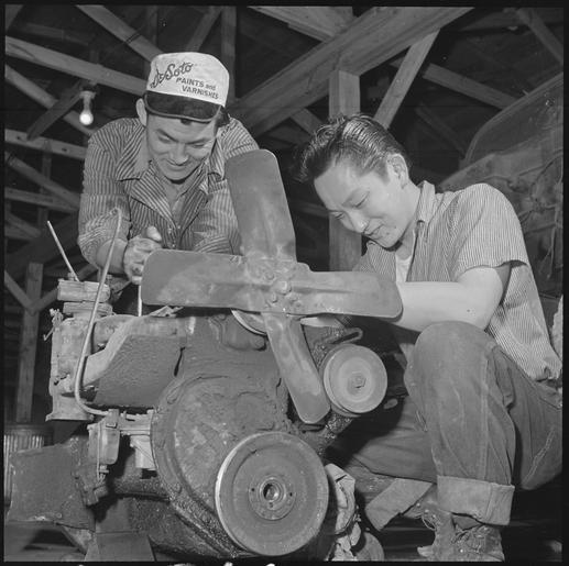 | Keywords: Rohwer Relocation Center, McGehee, Arkansas. In the motor pool repair section, George Baba and Tok . . . - NARA - 539383.tif Scope and content The full caption for this photograph reads Rohwer Relocation Center McGehee Arkansas In the motor pool repair section George Baba and Tokiji Umeda begin overhauling a truck loader Motorized equipment at the center is maintained by qualified mechanics volunteered from center residents former west coast persons of Japanese ancestry General notes 539383 Local identifier 210-G-E861 Department of the Interior War Relocation Authority 02/16/1944 - 06/30/1946 NARA-Author Parker Tom Photographer 4682167 <br /> Still Picture Records Section Special Media Archives Services Division NWCS-S National Archives at College Park 8601 Adelphi Road College Park MD 20740-6001 1943-03-09 Record group Record Group 210 Records of the War Relocation Authority 1941 - 1989 Record group ARC 537 Central Photographic File of the War Relocation Authority compiled 1942 - 1945 Series ARC 536000 File unit File unit ARC Variant control numbers NAIL Control Number NWDNS-210-G-E861 yes Other versions <gallery> File Rohwer_Relocation_Center _McGehee _Arkansas _In_the_motor_pool_repair_section _George_Baba_and_Tok_ _ _ _-_NARA_-_539383 tif tif File Rohwer_Relocation_Center _McGehee _Arkansas _In_the_motor_pool_repair_section _George_Baba_and_Tok_ _ _ _-_NARA_-_539383 jpg jpg </gallery> NARA-cooperation PD-USGov Rohwer War Relocation Center NARA TIF images with categorized JPGs |
