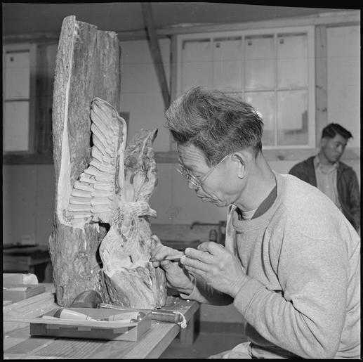 | Keywords: Rohwer Relocation Center, McGehee, Arkansas. In a wood carving class, this center resident, a form . . . - NARA - 539386.tif Scope and content The full caption for this photograph reads Rohwer Relocation Center McGehee Arkansas In a wood carving class this center resident a former Californian of Japanese ancestry works on a patriotic carving out from a natural hardwood formation General notes 539386 Local identifier 210-G-E864 Department of the Interior War Relocation Authority 02/16/1944 - 06/30/1946 NARA-Author Parker Tom Photographer 4682167 <br /> Still Picture Records Section Special Media Archives Services Division NWCS-S National Archives at College Park 8601 Adelphi Road College Park MD 20740-6001 1943-03-07 Record group Record Group 210 Records of the War Relocation Authority 1941 - 1989 Record group ARC 537 Central Photographic File of the War Relocation Authority compiled 1942 - 1945 Series ARC 536000 File unit File unit ARC Variant control numbers NAIL Control Number NWDNS-210-G-E864 yes Other versions <gallery> File Rohwer_Relocation_Center _McGehee _Arkansas _In_a_wood_carving_class _this_center_resident _a_form_ _ _ _-_NARA_-_539386 tif tif File Rohwer_Relocation_Center _McGehee _Arkansas _In_a_wood_carving_class _this_center_resident _a_form_ _ _ _-_NARA_-_539386 jpg jpg </gallery> NARA-cooperation PD-USGov Rohwer War Relocation Center NARA TIF images with categorized JPGs |