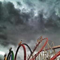 Keywords: roller coaster attraction ride folk festival year market carousel carnies grinding fun action adrenaline drama speed clouds sky