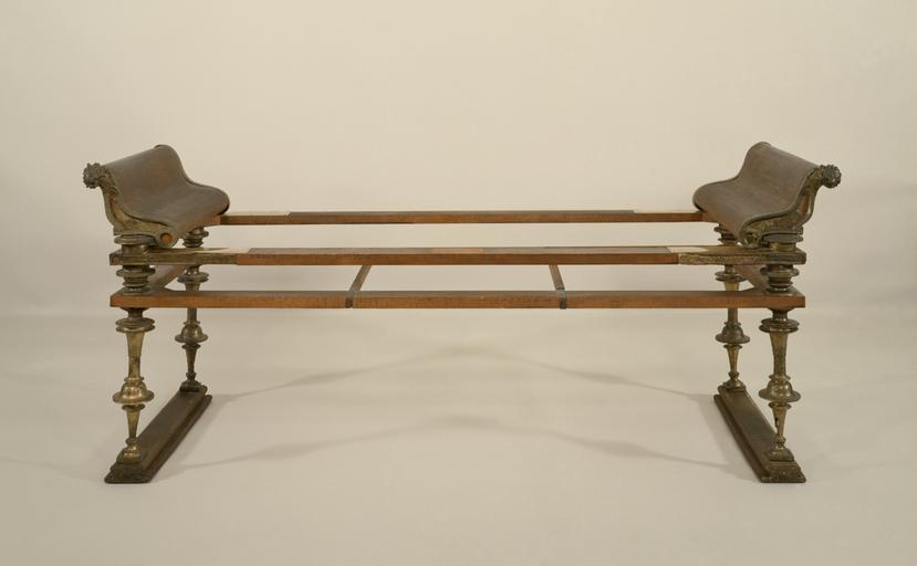 | Keywords: Roman - Banquet Couch - Walters 542365.jpg The dining room or triclinium of a Roman house derived its name from the three couches that were grouped at right angles to one another in a U-shape Wealthy citizens ate while reclining on these couches On this example bronze fittings decorate a wood frame restored Straps originally would have supported a mattress covered with luxurious textiles The ends of the couch are decorated with bronze fulcra the curving ends of the armrests which terminate in lion heads in the front and duck heads in the back Couches were highly valued pieces of furniture that were often buried with honored family members century 1 BC late Republican-Augustan bronze wood frame bedding cm 81 2 194 9 71 7 accession number 54 2365 29041 Found in a Chamber tomb near Canossa Arnold Ruesch Zurich Ruesch Collection Sale Lucerne 1936 William Randolph Hearst San Simeon 1936 by purchase Joseph Brummer New York by purchase Brummer Collection Sale Parke-Bernet Galleries New York June 8 1949 p 8 no 38 Walters Art Museum 1949 by purchase Museum purchase 1949 In Search of Ancient Treasure 40 Years of Collecting The Walters Art Gallery Baltimore 1978 From Alexander to Cleopatra Greek Art of the Hellenistic Age The Walters Art Gallery Baltimore 1988-1989 place of origin Flanders Walters Art Museum license Ancient Roman art in the Walters Art Museum Ancient Roman furniture Media contributed by the Walters Art Museum needs category review |