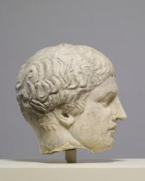 | Keywords: Roman - Head of the Doryphorus - Walters 23225 - Right.jpg Polyclitus of Argos attempted to depict the High Classical ideal of human form in his famous Doryphorus Spear-bearer statue In his treatise entitled Canon he wrote of achieving this ideal through perfect balance and proportion among the parts of the body The statue may have been intended to portray Achilles setting off for the Trojan War This copy follows but does not imitate exactly the structure and symmetry of the head of the original Doryphorus Original ca 450 BC; Roman copy 1st century BC-AD 4th century Classical-Roman marble cm 27 5 23 24 accession number 23 225 15224 Villa Borghese Stefano Bardini Florence before 1898 mode of acquisition unknown Bardini Sale American Art Association New York April 1918 William Boyce Thompson Yonkers 1918 by purchase Elizabeth Seton College Yonkers date of acquisition unknown by bequest Mr and Mrs James E LePere New York date of acquisition unknown by purchase Walters Art Museum Gift of Mr and Mrs James E LePere 1968 In Search of Ancient Treasure 40 Years of Collecting The Walters Art Gallery Baltimore 1978 place of origin Roman Empire Walters Art Museum license Ancient Greek sculptures in the Walters Art Museum Ancient Roman sculptures in the Walters Art Museum Media contributed by the Walters Art Museum needs category review Media contributed by the Walters Art Museum needs artist review |