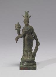 Keywords: Roman - Isis-Fortuna - Walters 54751 - Back.jpg Each Roman household had a lararium or household shrine in which small bronze figurines of deities including lares the divinities protecting the house were displayed The master of the house would make daily offerings at the shrine as well as more ceremonial offerings on important occasions This small figurine was found together with five others Walters 54 752 54 748 54 750 54 2290 and 54 749 in a lararium at Boscoreale the site of a Roman villa near Pompeii A Genius or priest stood before the household deities Isis-Fortuna Mercury a seated Jupiter Alexander Helios and a standing Jupiter These were divinities the family particularly venerated for the continuing good fortune of the household century 1 AD cast bronze with base cm 11 43 5 24 3 49 accession number 54 751 40870 De Prisco Boscoreale/Canessa 1906 by excavation Henry Walters Baltimore 1906 mode of acquisition unknown Walters Art Museum Henry Walters Acquired by Henry Walters 1906 Pompeii and The Roman Villa National Gallery of Art Washington; Los Angeles County Museum of Art Los Angeles 2008-2009 place of origin Roman Empire Walters Art Museum license Ancient Roman bronze statuettes from Boscoreale in the Walters Art Museum Media contributed by the Walters Art Museum needs category review Isis in Roman art Fortuna |