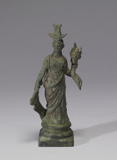 Keywords: Roman - Isis-Fortuna - Walters 54751.jpg Each Roman household had a lararium or household shrine in which small bronze figurines of deities including lares the divinities protecting the house were displayed The master of the house would make daily offerings at the shrine as well as more ceremonial offerings on important occasions This small figurine was found together with five others Walters 54 752 54 748 54 750 54 2290 and 54 749 in a lararium at Boscoreale the site of a Roman villa near Pompeii A Genius or priest stood before the household deities Isis-Fortuna Mercury a seated Jupiter Alexander Helios and a standing Jupiter These were divinities the family particularly venerated for the continuing good fortune of the household century 1 AD cast bronze with base cm 11 43 5 24 3 49 accession number 54 751 40870 De Prisco Boscoreale/Canessa 1906 by excavation Henry Walters Baltimore 1906 mode of acquisition unknown Walters Art Museum Henry Walters Acquired by Henry Walters 1906 Pompeii and The Roman Villa National Gallery of Art Washington; Los Angeles County Museum of Art Los Angeles 2008-2009 place of origin Roman Empire Walters Art Museum license Ancient Roman bronze statuettes from Boscoreale in the Walters Art Museum Media contributed by the Walters Art Museum needs category review |