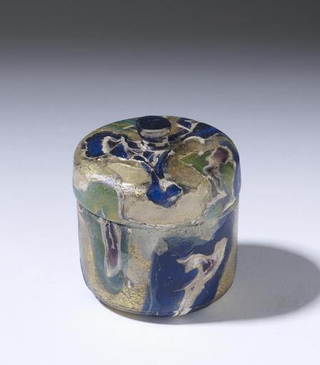 | Keywords: Roman - Pyxis - Walters 4776 - View B.jpg This pyxis or cylindrical box is an exquisite example of Roman luxury glassware used to hold cosmetics or precious jewelry late 1st century BC Augustan glass gold leaf with cover cm 4 91 4 06 h x diam accession number 47 76 14002 Found near Jerusalem Dikran Kelekian New York and Paris Henry Walters city Baltimore Walters Art Museum Henry Walters Acquired by Henry Walters 1924 3000 Years of Glass Treasures from The Walters Art Gallery The Walters Art Gallery Baltimore 1982 place of origin east Mediterranean Walters Art Museum license Ancient Roman pyxides Ancient Roman glassware in the Walters Art Museum 1st-century BC art in the United States Glass Jewellery boxes Ancient Roman golden glasses |