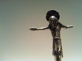 Keywords: Romanesque Treasure of MNAC (17)- Crist 1180 Plandiura.jpg El recorregut de la secci贸 de rom脿nic culmina amb els objectes d 檕rfebreria que constitu茂en els tresors de les esgl茅sies medievals Aquests objectes tenien una funci贸 lit煤rgica per貌 a la vegada formaven el patrimoni material dels temples el seu sistema d 檃cumulaci贸 de riquesa Les vitrines mostren una selecci贸 de peces d 櫭╬oques diverses del fons d 檕rfebreria rom脿nica del Museu Dues es dediquen a l 檃nomenada obra de Llemotges la c猫lebre producci贸 d 檕bjectes de coure esmaltats amb centre en aquesta ciutat del nord d 橭ccit脿nia The Romanesque tour in MNAC culminates with objects of gold which are the treasures of medieval churches These objects have a liturgical function but once formed the material heritage of temples their system accumulation of wealth Showcases a selection of pieces from different periods of the fund of silver Roman Museum Two are dedicated to the work of so-called Limoges famous for producing objects with enameled copper center This northern city of Aquitaine Institution Museu Nacional d'Art de Catalunya 2012-10-25 11 40 13 own PD-Art Romanesque Treasure in the MNAC |