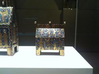 Keywords: Romanesque Treasure of MNAC- Arqueta de Sant Esteve.jpg El recorregut de la secci贸 de rom脿nic culmina amb els objectes d 檕rfebreria que constitu茂en els tresors de les esgl茅sies medievals Aquests objectes tenien una funci贸 lit煤rgica per貌 a la vegada formaven el patrimoni material dels temples el seu sistema d 檃cumulaci贸 de riquesa Les vitrines mostren una selecci贸 de peces d 櫭╬oques diverses del fons d 檕rfebreria rom脿nica del Museu Dues es dediquen a l 檃nomenada obra de Llemotges la c猫lebre producci贸 d 檕bjectes de coure esmaltats amb centre en aquesta ciutat del nord d 橭ccit脿nia The Romanesque tour in MNAC culminates with objects of gold which are the treasures of medieval churches These objects have a liturgical function but once formed the material heritage of temples their system accumulation of wealth Showcases a selection of pieces from different periods of the fund of silver Roman Museum Two are dedicated to the work of so-called Limoges famous for producing objects with enameled copper center This northern city of Aquitaine Institution Museu Nacional d'Art de Catalunya 2012-10-25 11 43 23 own PD-Art Romanesque Treasure in the MNAC |