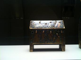 Keywords: Romanesque Treasure of MNAC- Arqueta els sants innocents.jpg El recorregut de la secci贸 de rom脿nic culmina amb els objectes d 檕rfebreria que constitu茂en els tresors de les esgl茅sies medievals Aquests objectes tenien una funci贸 lit煤rgica per貌 a la vegada formaven el patrimoni material dels temples el seu sistema d 檃cumulaci贸 de riquesa Les vitrines mostren una selecci贸 de peces d 櫭╬oques diverses del fons d 檕rfebreria rom脿nica del Museu Dues es dediquen a l 檃nomenada obra de Llemotges la c猫lebre producci贸 d 檕bjectes de coure esmaltats amb centre en aquesta ciutat del nord d 橭ccit脿nia The Romanesque tour in MNAC culminates with objects of gold which are the treasures of medieval churches These objects have a liturgical function but once formed the material heritage of temples their system accumulation of wealth Showcases a selection of pieces from different periods of the fund of silver Roman Museum Two are dedicated to the work of so-called Limoges famous for producing objects with enameled copper center This northern city of Aquitaine Institution Museu Nacional d'Art de Catalunya 2012-10-25 11 43 01 own PD-Art Romanesque Treasure in the MNAC |