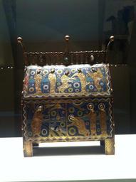 Keywords: Romanesque Treasure of MNAC- Arqueta resurrecci贸.jpg El recorregut de la secci贸 de rom脿nic culmina amb els objectes d 檕rfebreria que constitu茂en els tresors de les esgl茅sies medievals Aquests objectes tenien una funci贸 lit煤rgica per貌 a la vegada formaven el patrimoni material dels temples el seu sistema d 檃cumulaci贸 de riquesa Les vitrines mostren una selecci贸 de peces d 櫭╬oques diverses del fons d 檕rfebreria rom脿nica del Museu Dues es dediquen a l 檃nomenada obra de Llemotges la c猫lebre producci贸 d 檕bjectes de coure esmaltats amb centre en aquesta ciutat del nord d 橭ccit脿nia The Romanesque tour in MNAC culminates with objects of gold which are the treasures of medieval churches These objects have a liturgical function but once formed the material heritage of temples their system accumulation of wealth Showcases a selection of pieces from different periods of the fund of silver Roman Museum Two are dedicated to the work of so-called Limoges famous for producing objects with enameled copper center This northern city of Aquitaine Institution Museu Nacional d'Art de Catalunya 2012-10-25 11 43 14 own PD-Art Romanesque Treasure in the MNAC |