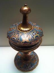 Keywords: Romanesque Treasure of MNAC- cop贸.jpg El recorregut de la secci贸 de rom脿nic culmina amb els objectes d 檕rfebreria que constitu茂en els tresors de les esgl茅sies medievals Aquests objectes tenien una funci贸 lit煤rgica per貌 a la vegada formaven el patrimoni material dels temples el seu sistema d 檃cumulaci贸 de riquesa Les vitrines mostren una selecci贸 de peces d 櫭╬oques diverses del fons d 檕rfebreria rom脿nica del Museu Dues es dediquen a l 檃nomenada obra de Llemotges la c猫lebre producci贸 d 檕bjectes de coure esmaltats amb centre en aquesta ciutat del nord d 橭ccit脿nia The Romanesque tour in MNAC culminates with objects of gold which are the treasures of medieval churches These objects have a liturgical function but once formed the material heritage of temples their system accumulation of wealth Showcases a selection of pieces from different periods of the fund of silver Roman Museum Two are dedicated to the work of so-called Limoges famous for producing objects with enameled copper center This northern city of Aquitaine Institution Museu Nacional d'Art de Catalunya 2012-10-25 11 41 28 own PD-Art Romanesque Treasure in the MNAC |
