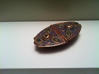 Keywords: Romanesque Treasure of MNAC- Naveta de Besalú.jpg El recorregut de la secció de romà nic culmina amb els objectes d ™orfebreria que constituïen els tresors de les esglésies medievals Aquests objectes tenien una funció litúrgica però a la vegada formaven el patrimoni material dels temples el seu sistema d ™acumulació de riquesa Les vitrines mostren una selecció de peces d ™Ã¨poques diverses del fons d ™orfebreria romà nica del Museu Dues es dediquen a l ™anomenada obra de Llemotges la cèlebre producció d ™objectes de coure esmaltats amb centre en aquesta ciutat del nord d ™Occità nia The Romanesque tour in MNAC culminates with objects of gold which are the treasures of medieval churches These objects have a liturgical function but once formed the material heritage of temples their system accumulation of wealth Showcases a selection of pieces from different periods of the fund of silver Roman Museum Two are dedicated to the work of so-called Limoges famous for producing objects with enameled copper center This northern city of Aquitaine Institution Museu Nacional d'Art de Catalunya 2012-10-25 11 40 47 own PD-Art Romanesque Treasure in the MNAC |