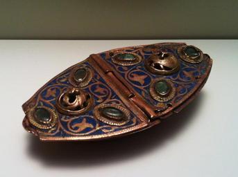 Keywords: Romanesque Treasure of MNAC- Naveta de Besalú (modificat).jpg El recorregut de la secció de romà nic culmina amb els objectes d ™orfebreria que constituïen els tresors de les esglésies medievals Aquests objectes tenien una funció litúrgica però a la vegada formaven el patrimoni material dels temples el seu sistema d ™acumulació de riquesa Les vitrines mostren una selecció de peces d ™Ã¨poques diverses del fons d ™orfebreria romà nica del Museu Dues es dediquen a l ™anomenada obra de Llemotges la cèlebre producció d ™objectes de coure esmaltats amb centre en aquesta ciutat del nord d ™Occità nia The Romanesque tour in MNAC culminates with objects of gold which are the treasures of medieval churches These objects have a liturgical function but once formed the material heritage of temples their system accumulation of wealth Showcases a selection of pieces from different periods of the fund of silver Roman Museum Two are dedicated to the work of so-called Limoges famous for producing objects with enameled copper center This northern city of Aquitaine Institution Museu Nacional d'Art de Catalunya 2012-10-25 11 40 47 own PD-Art Romanesque Treasure in the MNAC |