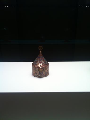 Keywords: Romanesque Treasure of MNAC- Pixis d'Ars.jpg El recorregut de la secci贸 de rom脿nic culmina amb els objectes d 檕rfebreria que constitu茂en els tresors de les esgl茅sies medievals Aquests objectes tenien una funci贸 lit煤rgica per貌 a la vegada formaven el patrimoni material dels temples el seu sistema d 檃cumulaci贸 de riquesa Les vitrines mostren una selecci贸 de peces d 櫭╬oques diverses del fons d 檕rfebreria rom脿nica del Museu Dues es dediquen a l 檃nomenada obra de Llemotges la c猫lebre producci贸 d 檕bjectes de coure esmaltats amb centre en aquesta ciutat del nord d 橭ccit脿nia The Romanesque tour in MNAC culminates with objects of gold which are the treasures of medieval churches These objects have a liturgical function but once formed the material heritage of temples their system accumulation of wealth Showcases a selection of pieces from different periods of the fund of silver Roman Museum Two are dedicated to the work of so-called Limoges famous for producing objects with enameled copper center This northern city of Aquitaine Institution Museu Nacional d'Art de Catalunya 2012-10-25 11 41 38 own PD-Art Romanesque Treasure in the MNAC |