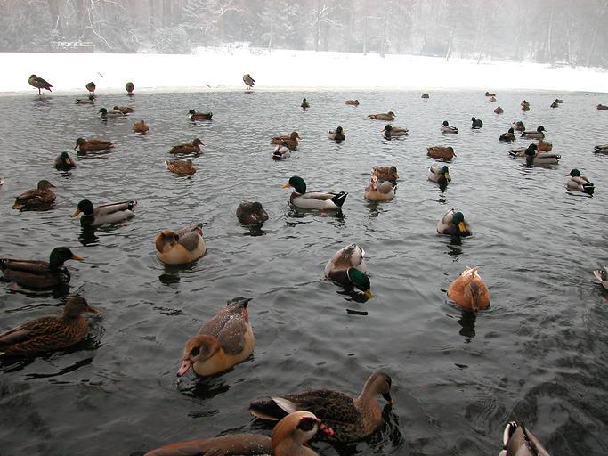 | Keywords: Rombergpark 3.jpg Parksee Botanischer Garten Dortmund Па ковое озе о Ботанический сад До тмунд Own 2010-01-09 Velopilger Rombergparkteich Winter in Rombergpark Winter 2009-2010 in Dortmund Anas platyrhynchos swimming in mixed species flocks Alopochen aegyptiacus feral swimming |