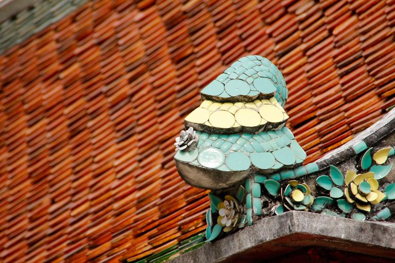 Keywords: roof sculpture mosaic tiles colorful pattern ceramic tile wall artfully art decorative color ornament