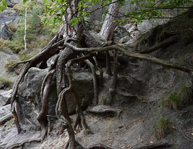 Keywords: root tree root birch national park nature rock elbe sandstone mountains octopus saxony