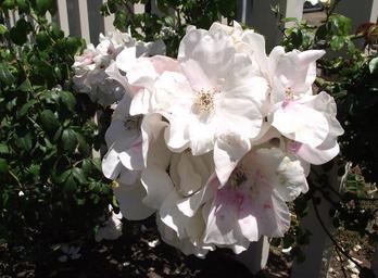 Keywords: Rosa-sallyholmes.jpg Rosa 'Sally Holmes' in the Inez Grant Parker Memorial Rose Garden Balboa Park San Diego California USA own Stickpen 2010-06-22 public domain Rosa 'Sally Holmes' Inez Grant Parker Memorial Rose Garden