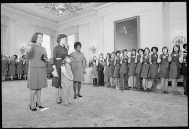 | Keywords: nara:arcid=174020 national archives nationalarchives women girls scouts scouting uniform white house whitehouse 1977 1970s seventies brownies juniors cadettes salute first lady firstlady girl scouts girlscouts gsa first lady rosalynn carter firstladyrosalynncarter rosalynn carter rosalynncarter 03/11/1977 03111977 march 11, 1977 march111977 blackandwhite monochrome black and white Original Caption: Rosalynn Carter with representatives from the Girl Scouts of America, 03/11/1977 From:: File Unit: 6-20 President Carter with Mr. John Shanklin and Grandson Jason 21-27 RC with Girl Scout Representative 28-35 RC at NIH with Mrs. Callaghan, 03/11/1977 - 03/11/1977 Created By:: President (1977-1981 : Carter). White House Staff Photographers. (01/20/1977 - 01/20/1981) Production Date: 03/11/1977 Persistent URL: arcweb.archives.gov/arc/action/ExternalIdSearch?id=174020 Repository: Jimmy Carter Library, Atlanta, GA For information about ordering reproductions of photographs held by the Still Picture Unit, visit: www.archives.gov/research/order/still-pictures.html Reproductions may be ordered via an independent vendor. NARA maintains a list of vendors at www.archives.gov/research/order/vendors-photos-maps-dc.html Access Restrictions: Unrestricted Use Restrictions: Unrestricted Original Caption: Rosalynn Carter with representatives from the Girl Scouts of America, 03/11/1977 From:: File Unit: 6-20 President Carter with Mr. John Shanklin and Grandson Jason 21-27 RC with Girl Scout Representative 28-35 RC at NIH with Mrs. Callaghan, 03/11/1977 - 03/11/1977 Created By:: President (1977-1981 : Carter). White House Staff Photographers. (01/20/1977 - 01/20/1981) Production Date: 03/11/1977 Persistent URL: arcweb.archives.gov/arc/action/ExternalIdSearch?id=174020 Repository: Jimmy Carter Library, Atlanta, GA For information about ordering reproductions of photographs held by the Still Picture Unit, visit: www.archives.gov/research/order/still-pictures.html Reproductions may be ordered via an independent vendor. NARA maintains a list of vendors at www.archives.gov/research/order/vendors-photos-maps-dc.html Access Restrictions: Unrestricted Use Restrictions: Unrestricted |