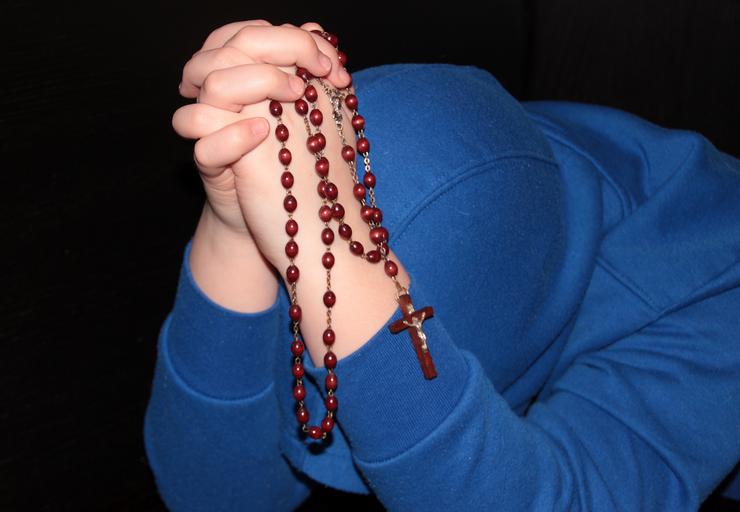 Keywords: rosary prayer religion catholic christianity faith christ cross hope force despair keep intimate absorbed containing symbol help sad consolation child's hand