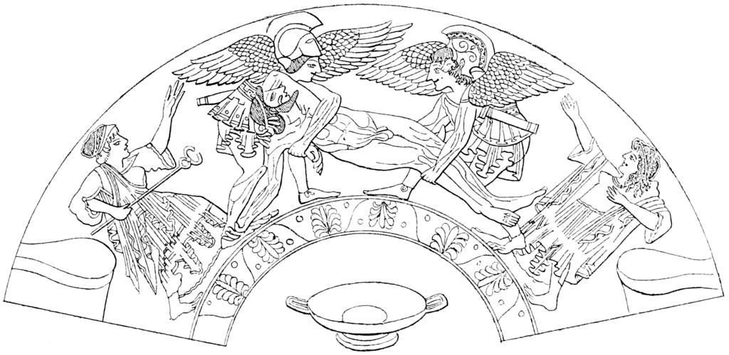 | Keywords: RoscherII.2-2677.png Bergung der Leiche Memnons rotfigurige Kylix Trinkschale des Pamphaios; von Klein dem Euphronios zugeschrieben Hartwig Meisterschalen 142 ff Birch erklärt die Gewaffneten für Windgötter und sieht in dem Bilde die Version des Quint 8m 2 550ff zustimmend Luckenbach 620 Die Frau rechts auf der Pamphaiosschale wird von Brunn Tr Mise 186 Eos von Lessing De mortis apud veteres figura p 39 und Bobert Than 14 f Mutter oder Gattin des Sarpedon genannt en Recovery of the corpse of Memnon red-figure kylix drinking cup Ausführliches Lexikon der griechischen und römischen Mythologie 1894 http //www archive org/details/ausfhrlichesle0202rosc Volume 2 2 on archive org S 2677 Abb 4 Original British Museum 834 veröffentlicht von Sam Birch Archaeologia 29 pl 16 d 139ff Roscher Wilhelm Heinrich 1845-1923 aus Overbeck Gatt her Bildw Taf XXII 14 1897 PD-old Information field Credit line Digitizing sponsor Wellesley College Library converted by User Perhelion Information field Notes Bobert Than S 11 ff nimmt folgende Entwickelung des Typus an Amphora im Louvre Pamphaiosschale Krater Campana und fasst den Toten als Sarpedon 11 16 666 ff vgl auch Koepp Arch Ztg 42 43 Ausführliches Lexikon der griechischen und römischen Mythologie Pamphaios Memnon in ancient Greek pottery Eos in ancient Greek pottery Thanatos in ancient Greek pottery Hypnos in ancient Greek pottery Sarpedon in ancient Greek pottery |