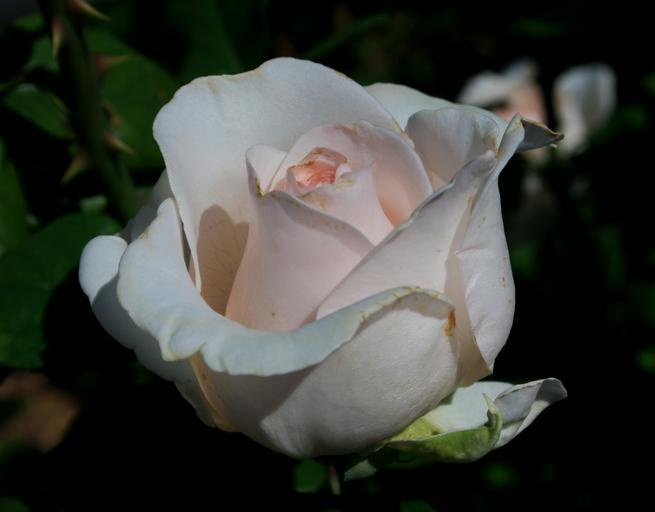 Keywords: rose bloom bud flower white pink tint shapely petals soft velvety beautiful gorgeous garden