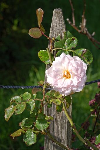Keywords: rose bloom rose fence post blossom bloom fence pile garden