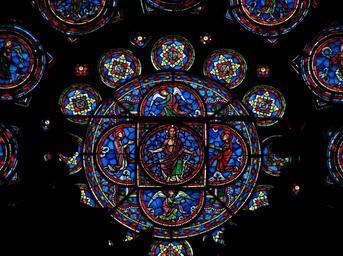 Keywords: Rose Façade Cathédrale de Laon 150908 2.jpg fr Rose Ouest sur la façade de la cathédrale Notre-Dame de Laon Rose du Jugement Dernier Médaillon central le Christ glorieux entouré de la Vierge et de Saint Jean Une partie date de 1220-1230 certains médaillons ont été refaits par Didron peintre verrier en 1869 et l'ensemble a été de nouveau restauré après l'explosion de la poudrière en 1870 Source le site du Ministère de la Culture own Vassil 2008-10-19 West rose window in Cathédrale Notre-Dame de Laon |