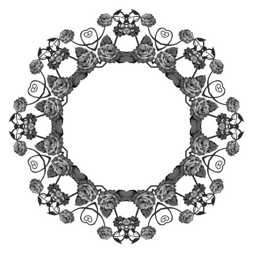 Keywords: rose floral flower flourish design decorative ornamental abstract geometric art grayscale frame black-and-white