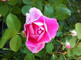 Keywords: rose flower nature petal floral bloom blossom pink plant leaves summer outdoor garden bud green colorful