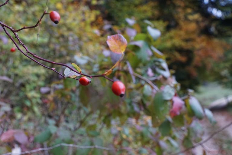 Keywords: rose hip tree bush red nature tee branch food forest autumn ripe mature