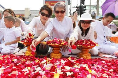 Keywords: rose petals thai thailand ceremony buddhism wat phra dhammakaya temple dhammakaya pagoda more than million budhas gold