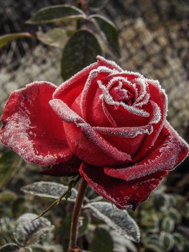 Keywords: rose red flower frost ice