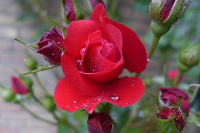 Keywords: rose red rose bloom beaded dewdrop close beautiful