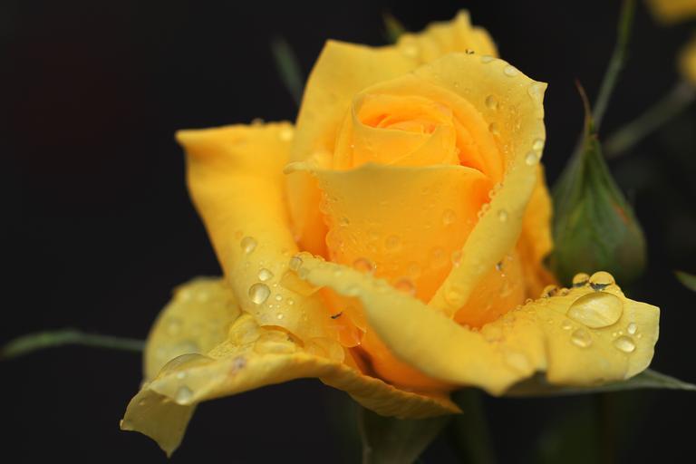 Keywords: rose rose blooms flower nature thorns plant green macro bud drip love yellow color decoration petals water raindrop water beads drop of water yellow flowers summer garden