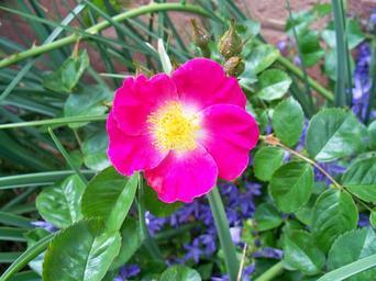 Keywords: rose single-petal pink cerise bush floribunda blossom close-up bloom cottage garden