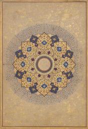 Keywords: Rosette, Titles of Sha Jahan.jpg Artwork A shamsa literally sun traditionally opened imperial Mughal albums Worked in bright colors and several tones of gold the meticulously designed and painted arabesques are enriched by fantastic flowers birds and animals The inscription in the center reads His Majesty Shihabuddin Muhammad Shahjahan the King Warrior of the Faith may God perpetuate his kingdom and sovereignty Early 1600s Ink opaque watercolor and gold on paper 15 3/16 in 38 6 cm x 10 7/16 in 26 5 cm Institution Metropolitan Museum of Art accession number 55 121 10 39 object history credit line http //www metmuseum org/Collections/search-the-collections/140008597 rpp 20 pg 1 gallerynos 450 ft pos 6 Public domain Assessments 1 Rosette titles of Shah Jahan PD-Art-100 Rosettes as art Shah Jahan I Mughal manuscripts 17th-century illuminated manuscripts Illuminated manuscripts created in India Art of India in the Metropolitan Museum of Art |