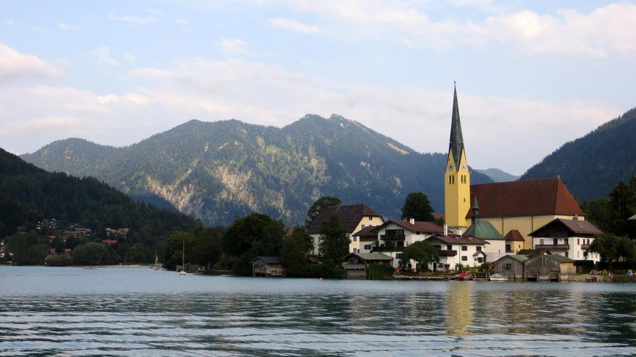 Keywords: rottach-egern church place city holiday recovery spa bavaria tegernsee wallberg lake town view