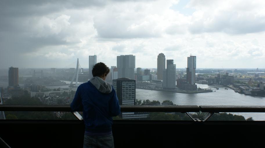 Keywords: rotterdam boy skyline port water cityscape big city view landscape cloudy day river