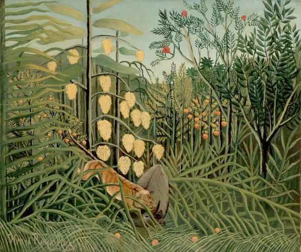 MAKE A MEME View Large Image Henri - In a Tropical Forest. Struggle between Tiger and Bull.jpg Artwork creator Henri Rousseau Struggle between Tiger and Bull Combat de tigre et de buffle c 1908 1909 oil canvas cm 46 55 Institution Hermitage object history credit line ...